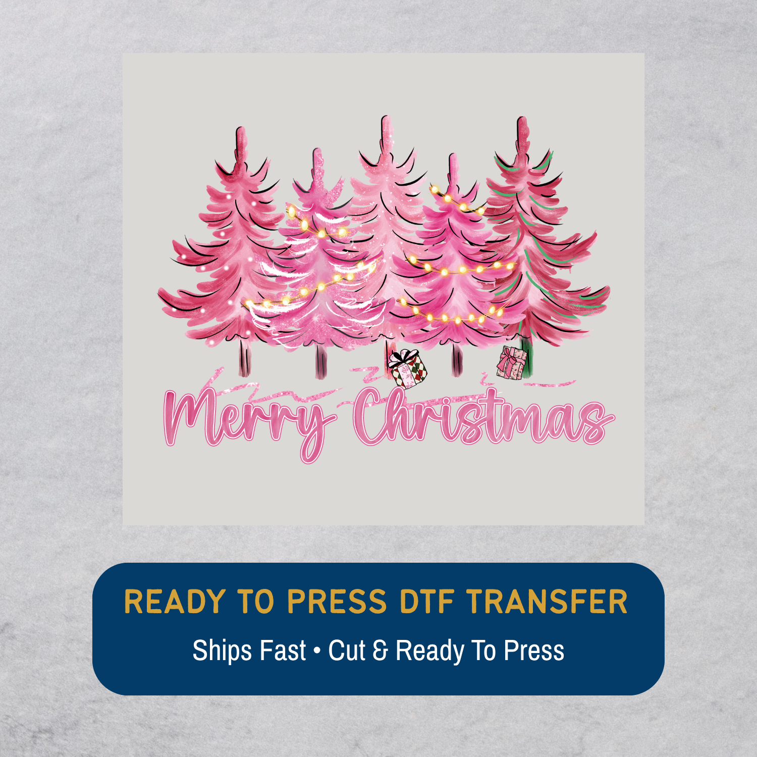 Festive Pink Evergreens DTF Transfer