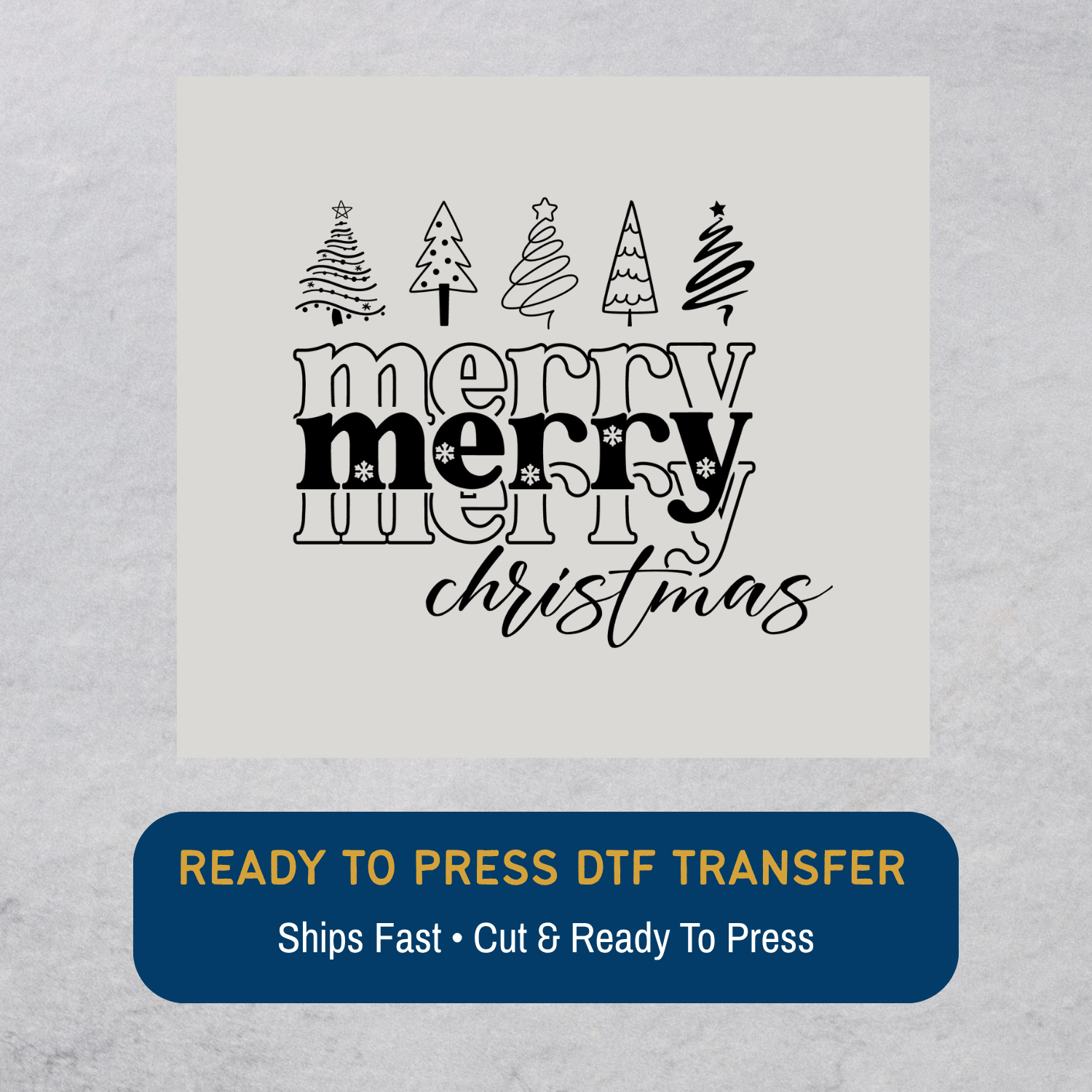 Holiday Tree Line with Merry Christmas Text DTF Transfer